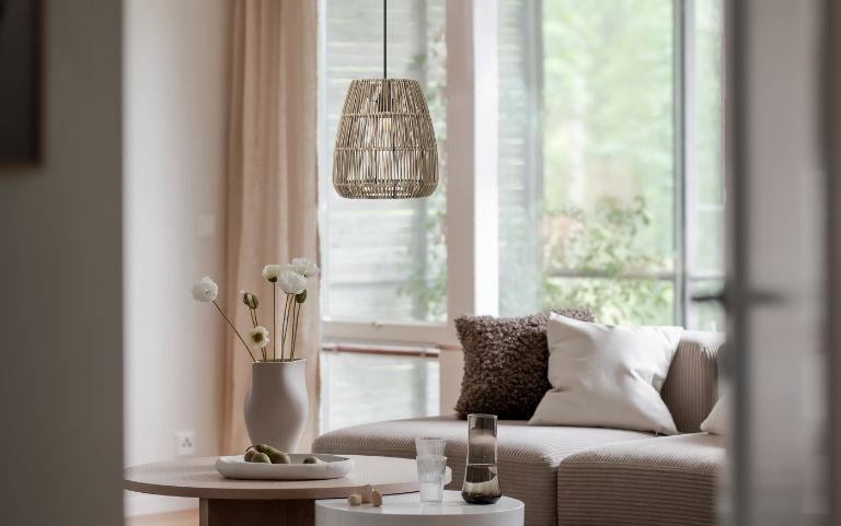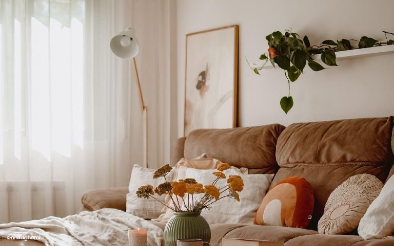 Útulnou atmosféru vytvářejí příjemné deky, měkké polštáře a LED svíčky. Drobné detaily, jako jsou dřevěné misky, hliněné vázy, ratanové košíky nebo koberce z přírodních vláken, dotvářejí vzhled a dodávají domovu charakter.