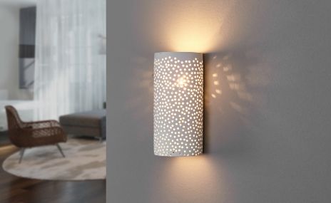 Jednoduchá elegance modelů s rovnými liniemi dokonale zapadá do moderního stylu bydlení, zatímco vzory s jemnými perforovanými vzory vytvářejí na stěnách kouzelné světelné efekty. Zakřivené tvary inspirované přírodou dodávají svítidlům organickou lehkost. Sádra jako materiál zaujme nejen svou všestranností, ale také přirozeností: tento minerální materiál je šetrný k životnímu prostředí a recyklovatelný. Tip: Kutilové si mohou sádrové lampy jednoduše sami namalovat nebo vyzdobit.