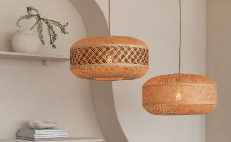 Bambusová a ratanová svítidla vypadají podobně a obě jsou robustní, i když ratan je poněkud pružnější a lépe se hodí k tkaní. Zatímco bambus patří do čeledi travinovitých a je doma po celém světě s výjimkou Evropy, ratan roste především v tropických oblastech a je to popínavá palma. Oba materiály jsou udržitelné, ale bambus roste ještě rychleji, a proto má náskok.