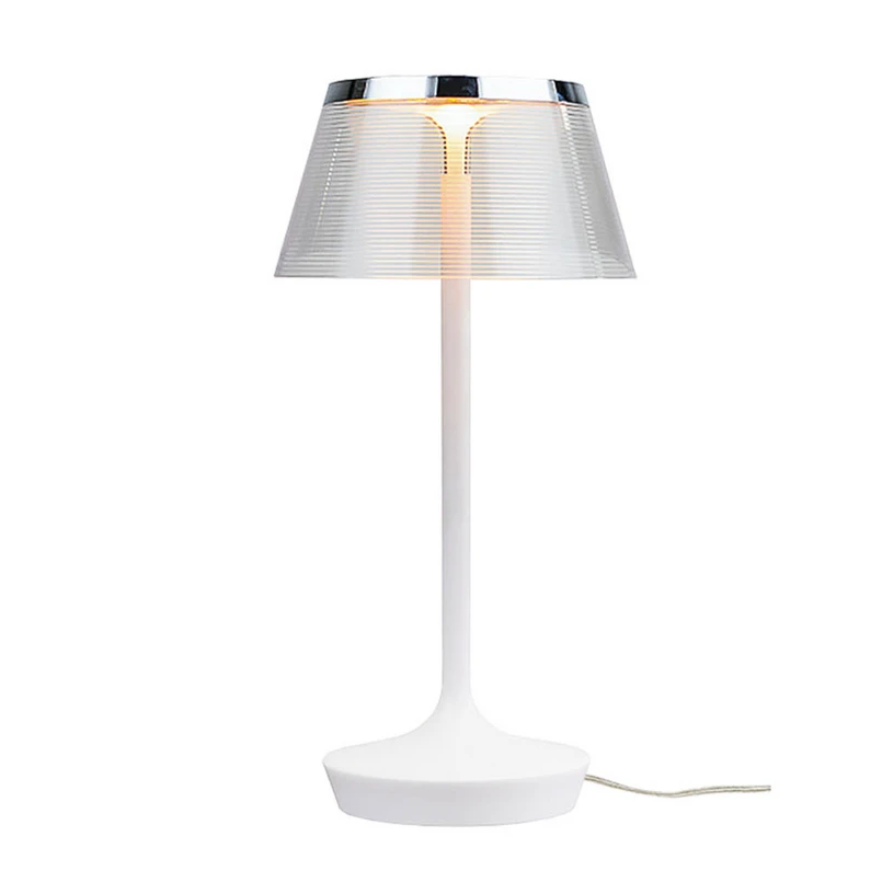 Tuto krásnou stolní lampu se světelným zdrojem LED lze ideálně kombinovat s mladým, moderním stylem bydlení. Na podstavci z lakovaného kovu, který svým tulipánovým tvarem dodává vzhledu svěžest, trůní akrylové stínidlo, které je barevně transparentní, takže světlo teplých bílých vyzařujících LED diod proniká do celé místnosti. Chromovaný okraj stínidla je okouzlujícím detailem.