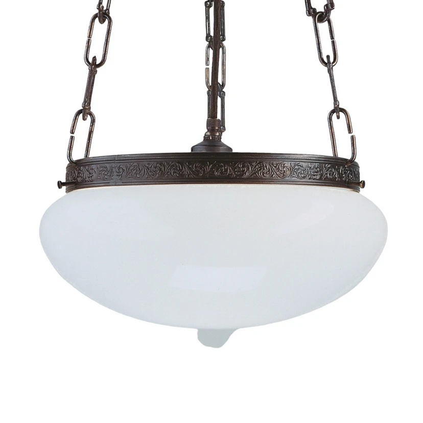 Starožitná závěsná lampa Verne s klasickými prvky Verne je speciální model závěsné lampy se starožitným vzhledem a klasickými prvky z doby kolem roku 1900. Ručně foukané stínidlo navíc přináší do místnosti neoslňující světlo a díky svému zakřivenému tvaru je zvláštním prvkem pro každou místnost. Zdobný kovový okraj je ozdobou lampy, přičemž pozornost byla věnována věrnému vzhledu v materiálu. Čištění mosazného rámu se provádí suchým hadříkem a trochou olivového oleje a přináší nový lesk. Uměle vytvořené patiny bylo dosaženo barvením a lze ji jen stěží rozeznat od původní patiny.