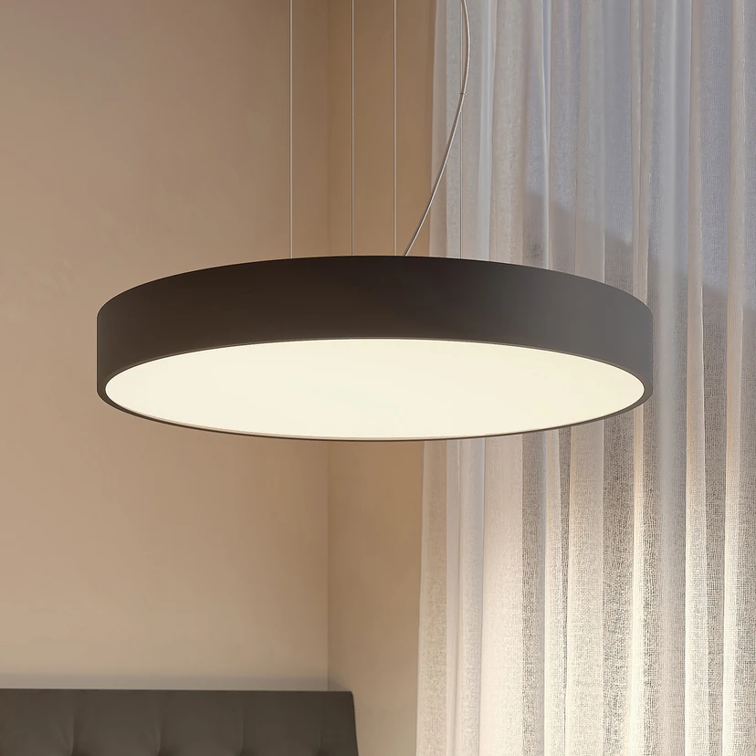 Noabelle visí ze stropu na filigránových lanech a kombinuje funkčnost s jednoduchým, ale stylovým designem. Závěsná lampa má poměrně velké rozměry a velmi dobrou svítivost, takže může osvětlovat i větší místnosti a plochy. Spotřeba energie zůstává na poměrně nízké úrovni, takže lze hovořit o účinném svítidle, které je technicky zcela aktuální. Za to samozřejmě vděčí moderní LED technologii, kde právě tyto body jasně patří mezi výhody a které se také vyznačují dlouhou životností a dobou osvětlení. Minimalistický design se hodí stejně dobře v obytných oblastech, jako v komerčním prostředí, a skutečnost, že během instalace můžete upravit barvu světla, zvyšuje možnosti použití. Teplé bílé světlo působí obzvláště útulně, zatímco univerzální bílá je vhodnější pro koncentrovanou práci. Jídelní a pracovní stoly jsou dobrou oblastí použití velké kulaté LED závěsné lampy s černým kovovým stínidlem a bílým plastovým difuzorem, který umožňuje rovnoměrné světlo.