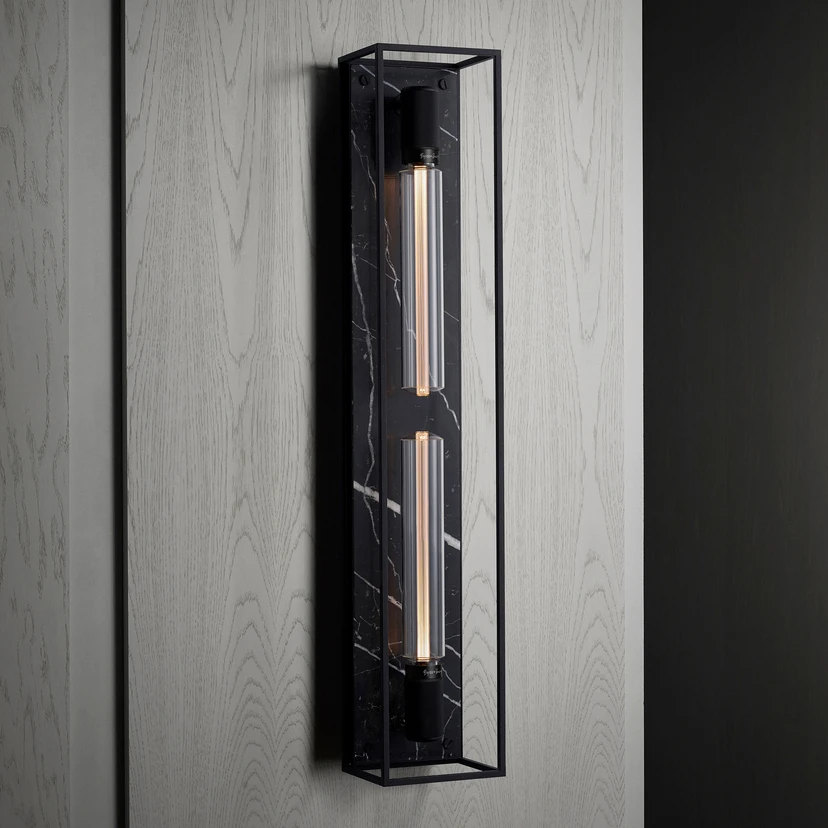 LED nástěnné svítidlo Caged Wall X-large s mramorovou deskou a dvěma LED trubicemi