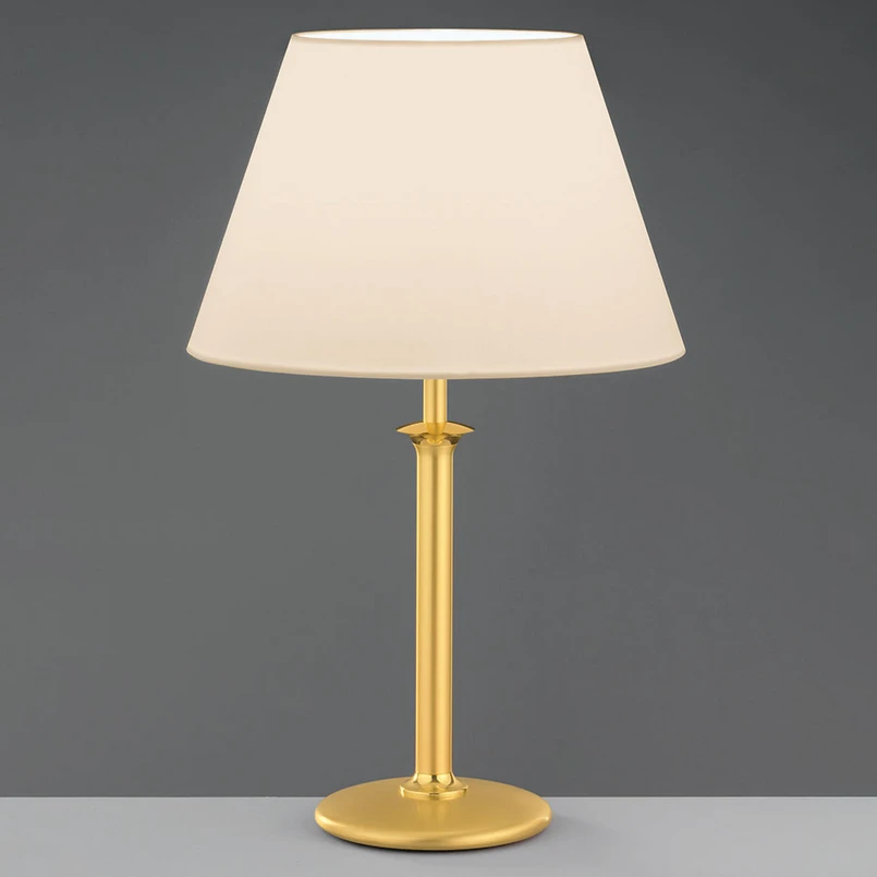 Royce je stolní lampa, která se skládá z klasického textilního stínítka vyrobeného z chintzu a žárovky z mosazi. Základna svítidla je navržena s matným povrchem a lesklými akcenty, díky nimž vypadá obzvláště elegantně. Krémově zbarvený textilní odstín se směrem dolů rozšiřuje a světlo propouští jemně a v místnosti vytváří akcenty teplého světla.