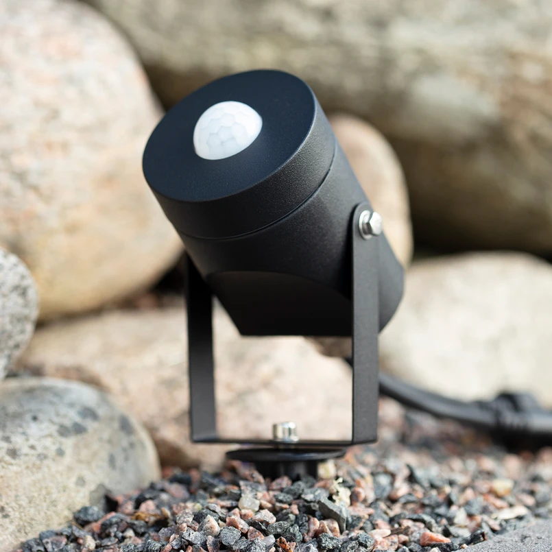 Světlo, když ho potřebujete - s detektorem pohybu systému Garden 24V Tento černý detektor pohybu je navržen jako venkovní reflektor a má bod, ve kterém je umístěn senzor, který lze díky montáži přesouvat a nastavovat. To znamená, že požadovaný prostor je vždy optimálně detekován. PIR čidlo lze flexibilně umístit díky zemnímu trnu. Při detekci pohybu zajistí, aby se všechna připojená světla v systému Garden 24V zapnula a po ukončení pohybu také opět vypnula. Je proto ideální pro příjezdové cesty nebo vstupní prostory - Úhel detekce 120° - Dosah detekce 7 m - Po 2 minutách svícení se automaticky vypne - Funguje pouze s ostatními komponenty systému Garden 24V od společnosti Markslöjd