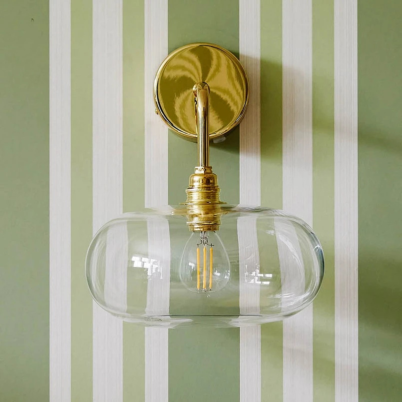 Skleněné nástěnné svítidlo Horizon se světelným ramenem ve zlaté barvě Nástěnné svítidlo Horizon je doplňkovým zdrojem světla pro soukromé a gastronomické prostory, který lze použít k vytvoření atmosférického dodatečného osvětlení a zároveň jako vysoce dekorativní prvek do interiéru. Z kulatého nástěnného držáku se směrem dolů ohýbá kovové rameno lakované zlatou barvou, na jehož konci je esteticky tvarované skleněné stínidlo z ručně foukaného skla. Obklopuje držák lampy, který je rovněž ve zlaté barvě. Protože je barevné sklo průhledné, je vidět i použitá lampa. Proto je nejlepší použít žárovku s vláknem nebo rustikální žárovku (viz příslušenství, není součástí dodávky). Stínidlo je vyrobeno z ručně foukaného skla. Každá lampa je jedinečná; vzhledem k výrobnímu procesu se mohou vyskytnout drobné odchylky, jako jsou drobné vzduchové inkluze apod. - design lampy inspirovaný skandinávskými prvky od společnosti EBB & FLOW (Dánsko)