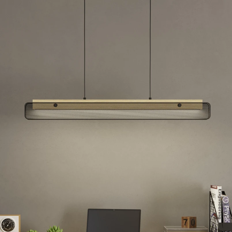 Závěsné svítidlo Kokomo-Z LED, Eglo connect, CCT, RGB Závěsné svítidlo Kokomo-Z LED z řady connect.z pro chytrý domov se skládá ze zavěšeného podlouhlého těla z kaučukového dřeva, které je kombinováno s osvětlenou plochou z matného bílého plastu ve spodní části a dvěma rozšířenými kovovými prvky v černé barvě. Integrované LED diody poskytují příjemné světlo podle potřeby. Díky možnosti volby mezi teplým bílým, neutrálním bílým a denním bílým světlem a různými barvami světla RGB je osvětlení pomocí závěsného svítidla Kokomo-Z neuvěřitelně flexibilní. Ovládá se prostřednictvím bezplatné aplikace (AwoX Home Control) a umožňuje přístup k dalším komfortním funkcím, jako je stmívání, časovač, simulace přítomnosti a mnoho dalších. Svítidlo se ovládá přes Bluetooth a ZigBee 3.0 a lze jej ovládat také prostřednictvím kompatibilních hlasových asistentů. Chytrou závěsnou lampu lze alternativně ovládat také pomocí samostatně dostupného dálkového ovladače. Díky svému industriálnímu designu se lampa velmi dobře kombinuje s různými styly vybavení a poskytuje moderní osvětlení v obývacím pokoji nebo jídelně.