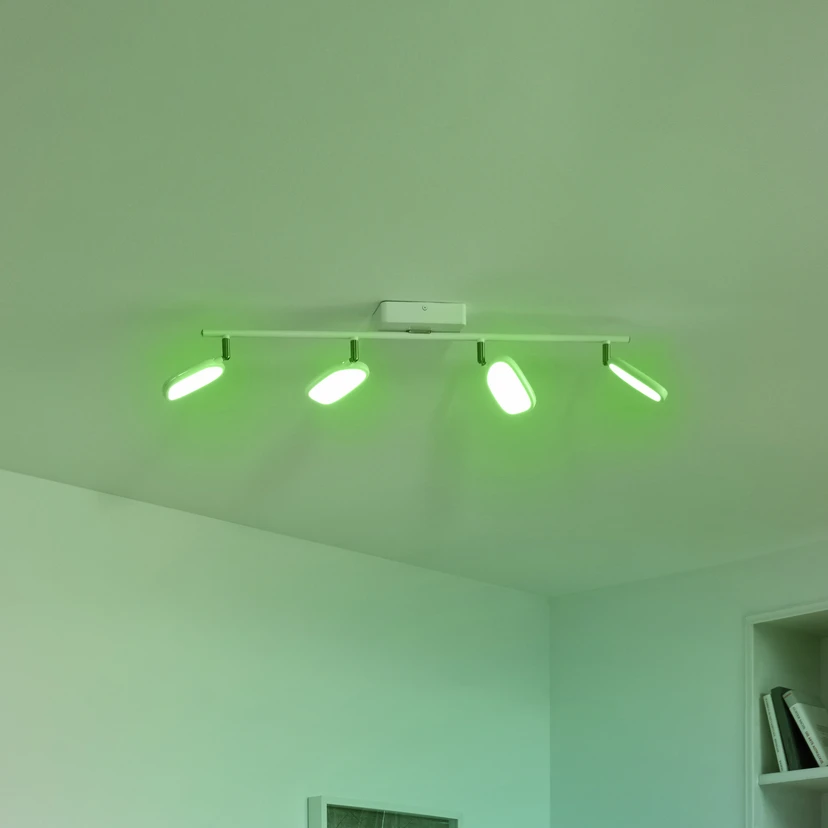 Ovládání pomocí dálkového ovladače nebo aplikace: Stropní bodové svítidlo Palombare-C LED Čtyřplamenné stropní bodové svítidlo Palombare-C z řady EGLO-connect má moderní LED diody, které jsou vybaveny nejnovější technologií Bluetooth. Ty pak lze ovládat, stmívat a měnit barvu světla nezávisle na internetu pomocí odpovídajícího dálkového ovladače nebo velmi chytře pomocí odpovídající aplikace přes chytrý telefon nebo tablet. Při použití aplikace se přidávají další možnosti nastavení. Stropní bodové svítidlo Palombare-C lze použít také jako noční světlo. Simulace přítomnosti během dovolené zajišťuje bezpečnost a funkce diskotéky umožňuje rozzářit obývací pokoj nebo dětský pokoj v rytmu vlastního playlistu. Funkce / kompatibilita:- moderní technologie Bluetooth s chráněnou sítí- možnost ovládání prostřednictvím bezplatné aplikace Smart Control App by AwoX- možnost ovládání pomocí odpovídajícího dálkového ovladače EGLO connect (k dispozici jako příslušenství)- možnost stmívání- možnost regulace barev RGB- možnost regulace bílého světla: teplá bílá (2 700 K) - denní světlo (6 500 K)