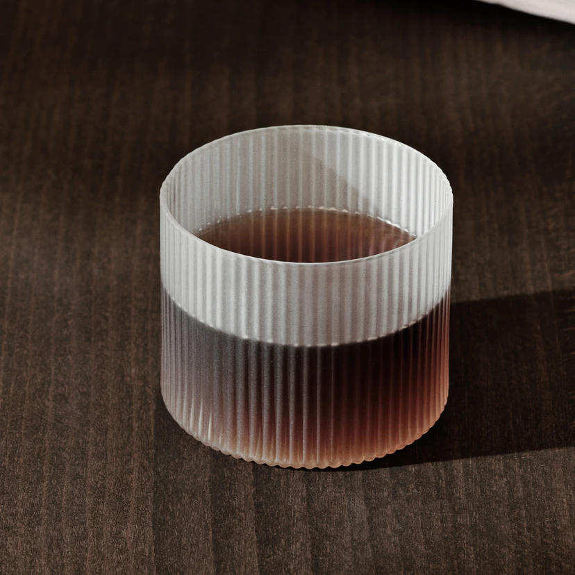 Sklenice Ripple Low, foukaná, 200 ml, sada 4 kusů Tyto nízké foukané sklenice Ripple Low s výrazným, krásně zvlněným povrchem se dodávají v sadě čtyř kusů. Svislé linie dodávají jednoduchému, klasickému tvaru výraznou sofistikovanost a sklenice jsou ideální pro neformální servírování večeří. Můžete je kombinovat s dalšími kousky z kolekce sklenic Ripple od ferm LIVING (viz příslušenství) a docílit tak jednotného designu prostírání. informace o produktu: Sada 4 kusů. Objem: 200 ml. Vyrobeno z foukaného skla - jsou možné odchylky od produktové fotografie. Pokyny k údržbě: Lze mýt v myčce nádobí.