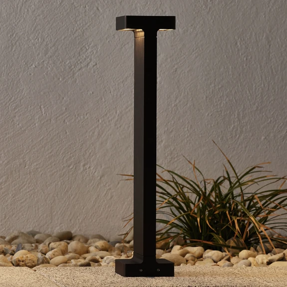 Díky dvojitému práškovému lakování povrchu je tato tmavě hnědá LED lampa s paticí Casting T 100 obzvláště odolná vůči povětrnostním vlivům. Hranaté svítidlo připomínající T-profily bylo vyrobeno z lisovaného a tlakově litého hliníku a jeho povrch byl nejprve opískován, aby se dosáhlo lepší přilnavosti nátěru. První epoxidový práškový nátěr zajišťuje odolnost proti mechanickým a chemickým vlivům, druhá vrstva je vyrobena z polyesteru a chrání povrch, a tím i tmavě hnědou barvu, před UV zářením a povětrnostními vlivy.