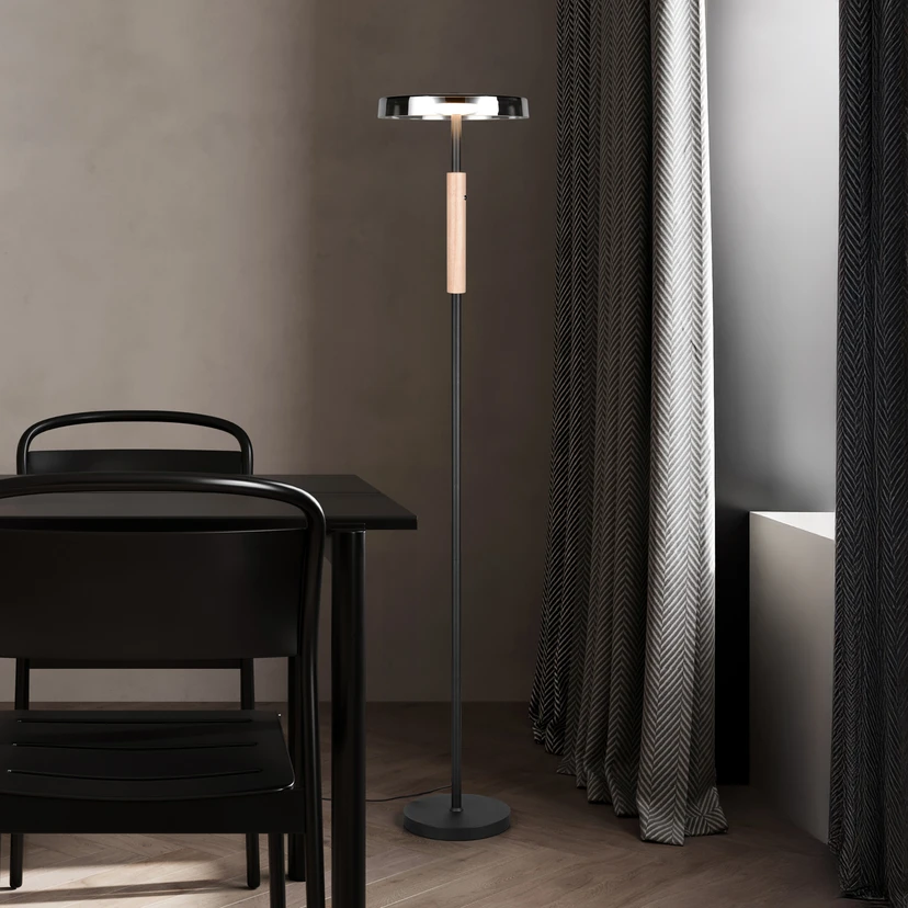 LED stojací lampa Celeste chrom/dřevo 160 cm sklo/kov Touchdim