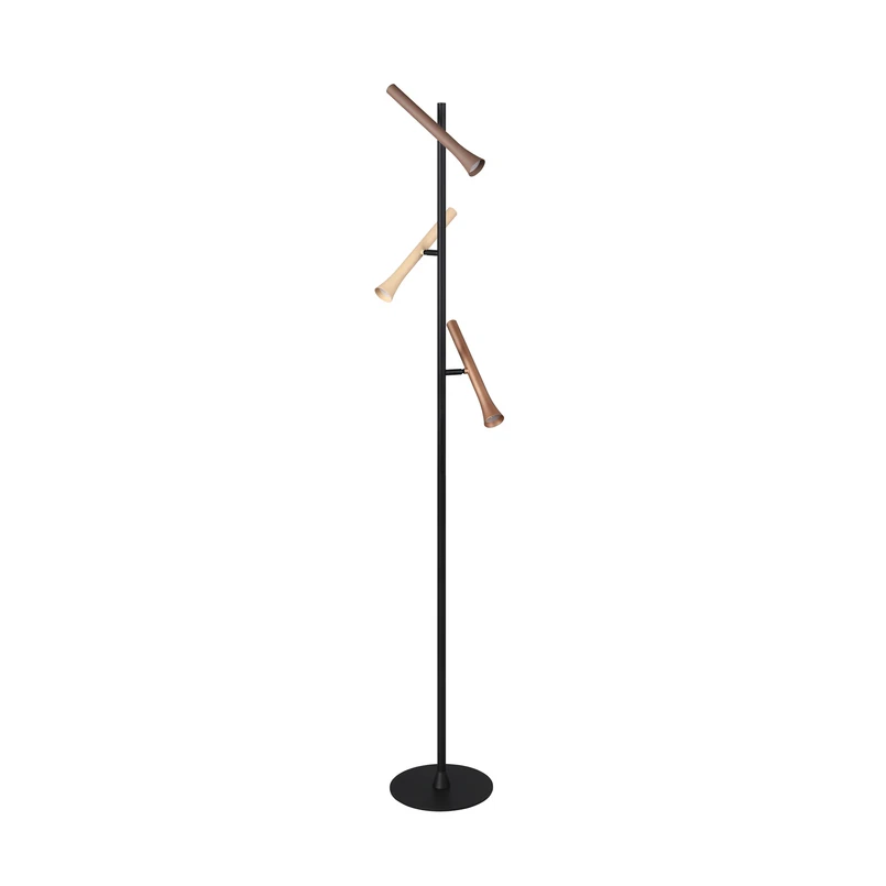 LED stojací lampa Fiato, 3 světla, matná černá, kov, stmívač
