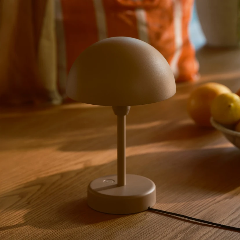 LED stolní lampa na baterii Ellen To-Go spojuje nadčasový skandinávský design s promyšlenou funkčností. Kryt z vysoce kvalitního hliníku a plastu v elegantní hnědé barvě zajišťuje harmonické začlenění do nejrůznějších obytných prostor. Díky IP kódu 44 je lampa vhodná jak pro vnitřní, tak pro venkovní použití, ať už na balkóně, terase nebo v obývacím pokoji. Pevně zabudovaný LED světelný zdroj poskytuje teplou bílou světlo s teplotou světla 3 000 K a barevným podáním 80 Ra, čímž vytváří příjemnou atmosféru.