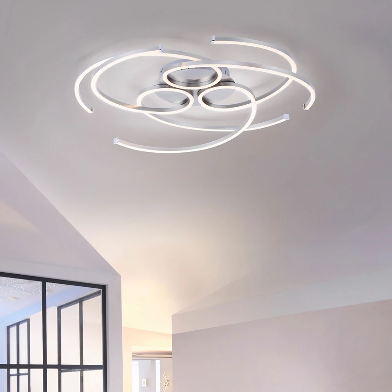 Stropní svítidlo Danilo LED je osvětlovací prvek, který se perfektně hodí do moderních obytných prostor díky zakřiveným tyčkám světla. Teplá bílá barva sv?tla vytváří útulné prostředí. Protože Danilo má technologii Simply Dim, lze jas regulovat pomocí běžného nástěnného vypínače. Díky zesílení spínání ovladače Simply-Dim lze intenzitu světla plynule regulovat od 100% do 10%. Díky funkci paměti lze požadovaný jas uložit při vypnutí.