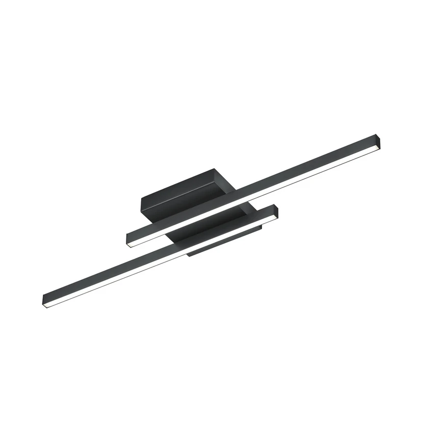 Rovné stropní svítidlo LED Nuri se dvěma profily - svítí nahoru a dolů Stropní svítidlo LED Nuri poskytuje přímé a nepřímé světlo pro efektivní celkové osvětlení. Pod čtvercovou stříškou je vybaven dvěma rovnoběžnými a mírně posunutými profily, v nichž jsou umístěny LED diody. Jejich teplé bílé světlo výborně odráží barvy v okolí (CRI 90) a vyzařuje směrem dolů i nahoru. Nuri nabízí vysoký světelný tok, který lze v případě potřeby regulovat externě pomocí triakového stmívače.