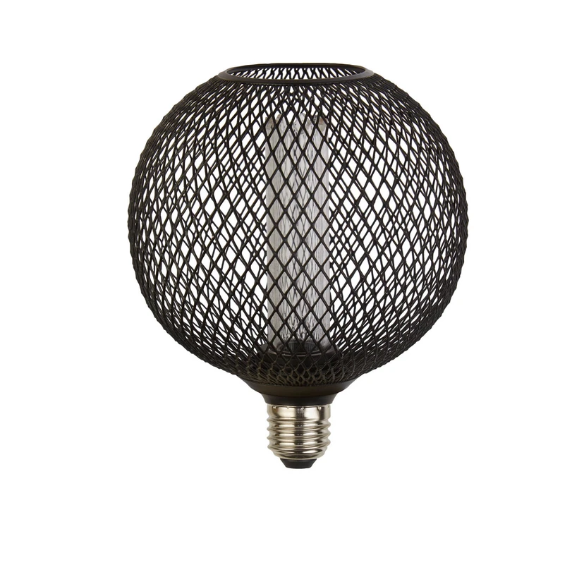 LED světelný zdroj Deco Bulb Wire Globe E27 4,5 W, stmívatelný Tento světelný zdroj ve tvaru koule představuje snadný způsob, jak aktualizovat stávající svítidlo nebo dát novému nový vzhled. Trubicová žárovka je vyrobena s černým drátěným stínítkem se šrafovaným vzorem a hodí se do jakékoli patice E27.