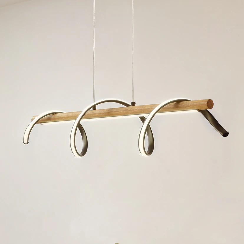 Lindby LED závěsné světlo Spiraali, černá barva, dřevo, délka 95 cm