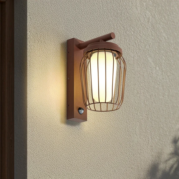 Lucande Venkovní nástěnné svítidlo Chandan, rez, senzor, IP44, E27
