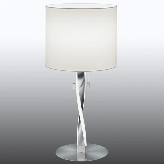 Design stolní lampy Nandor je založen na efektivní kombinaci klasických a moderních prvků. Díky elegantně zakřivené noze získá vzhled dynamický impuls, který je pohlcen a změkčen tvarovaným kulatým stínidlem. Dvě dlouhodobé a energeticky úsporné 3 wattové LED žárovky vyzařují teplé bílé světlo s teplotou barev 3.000 Kelvinů a světelnou intenzitou 600 lumenů. Žárovku s paticí E27 a LED žárovky lze pohodlně nezávisle zapínat tažným spínačem a vytvořit tak harmonickou expozici pohody.
