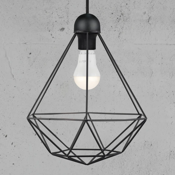 Zajímavě a moderně působí závěsné světlo Tees svým tvarem. Otevřené stínidlo se skládá z kovových podpěr, které jsou ve spodní části tvarované podobně jako diamant. Konečný vzhled odstává světlo díky umístění žárovky. Zvlášť hezky působí žárovka ve tvaru diamantu, která odráží tvar stínidla. Mohou se také používat žárovky globe s paticí E14 (maximálně 60 W). Jako příslušenství si můžete vybrat vhodnou žárovku.