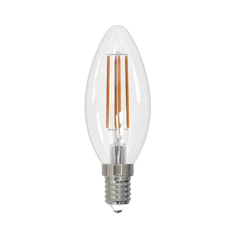 LED žárovka E14 2,2 W ve tvaru svíčky, teplá bílá Tato LED žárovka s LED vlákny a čirým sklem je dokonalou symbiózou nostalgie a účinnosti. Poskytuje teplé bílé osvětlení, vyznačuje se velmi dobrou energetickou účinností a životností a díky svému atraktivnímu vzhledu je také velmi dobrou volbou pro lustry, svítidla bez stínidel nebo průhledná stínidla. 94 % úspory energie lze dosáhnout s touto LED žárovkou svíčkou ve srovnání se srovnatelnou běžnou žárovkou.