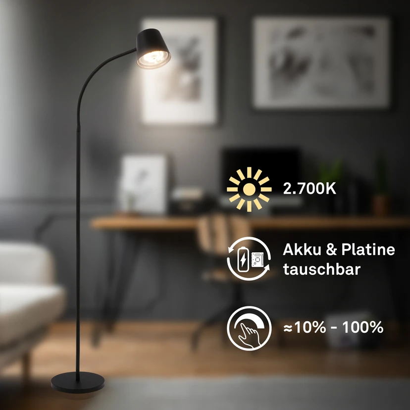 Dobíjecí stojací lampa LED Cielo s dotykovým stmívačem Stojací lampu LED lze použít kdekoli v interiéru. Lze ji dobíjet pomocí dodaného kabelu USB (bez síťového adaptéru) - včetně plynule regulovatelného dotykového stmívače - včetně vypínače - 12hodinová doba svícení - mechanický vypínač zabraňující hlubokému vybití