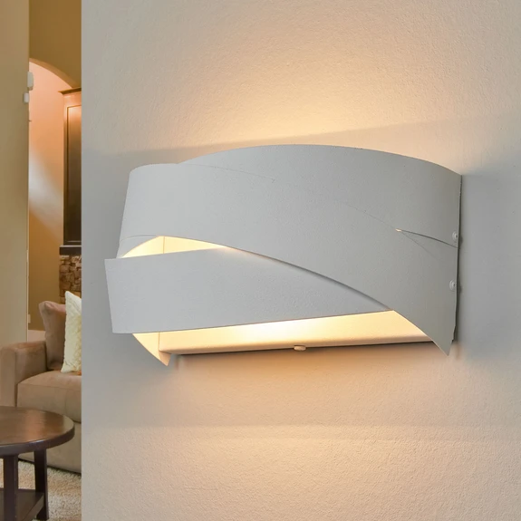 Tělo svítidla této elegantní nástěnné lampy se skládá z tenkých kovových pásů, které jsou navzájem uspořádány různými způsoby. Kovové pásky jsou uprostřed lampy, takže světlo může hlavně unikat nahoru a dolů. Výsledkem je, že místnost je úžasně nepřímo osvětlena. Zda má lampa poskytnout útulný vzhled v obývacím pokoji nebo v hale, je jen na vás, protože nadčasové bílé barevné provedení z ní dělá univerzální zdroj světla. V případě potřeby lze jas - za předpokladu, že použitý zdroj světla lze ztlumit - regulovat také pomocí samostatného stmívače na stěnu, takže lze vytvořit ještě útulnější atmosféru.