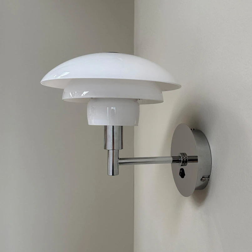 Nástěnné svítidlo Morph v bílé barvě a chromu - Design: Frank Kerdil Nástěnné svítidlo Morph je vyrobeno z bílého ručně foukaného opálového skla. Rameno lampy a nástěnný držák jsou vyrobeny z kovu a mají lesklou chromovou povrchovou úpravu. Toto nástěnné svítidlo vytváří klasický a krásný severský styl a svým nadčasovým designem se hodí do obývacích pokojů a ložnic. Kolekci svítidel Morph navrhl renomovaný dánský designér Frank Kerdil.