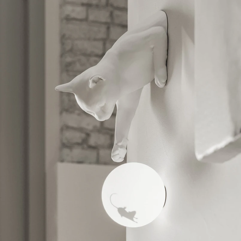 Nástěnné svítidlo Karman Maoo, bílá keramika, sklo, figurka kočky