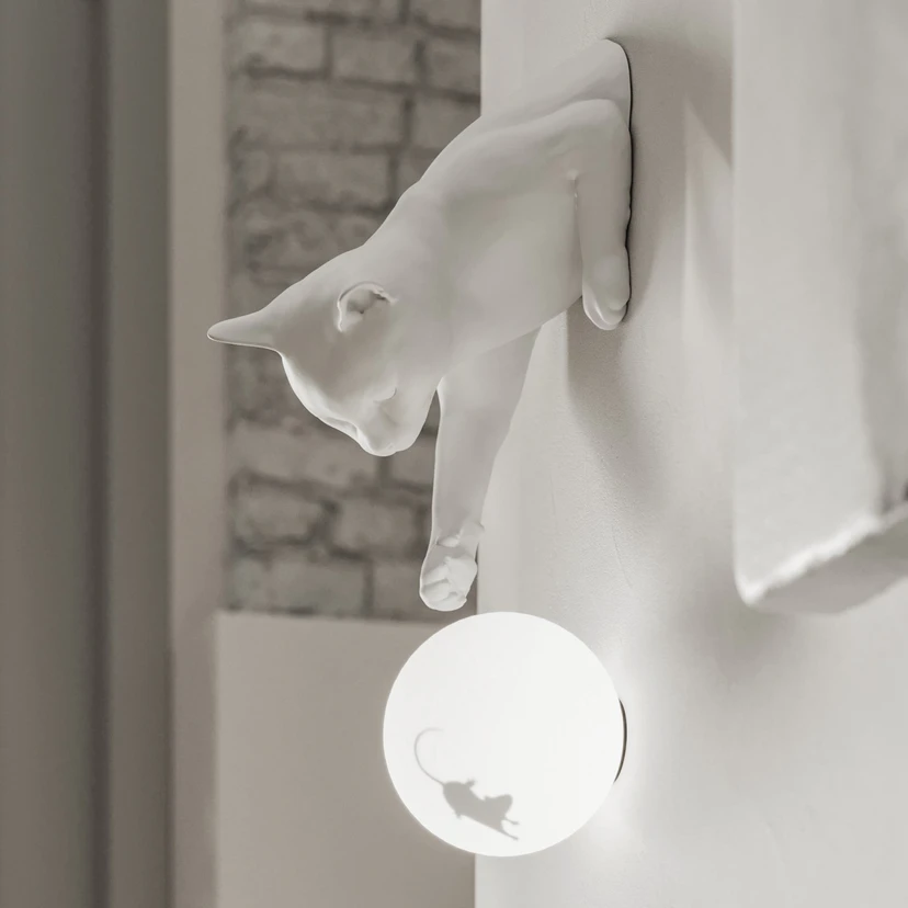 Nástěnné svítidlo Karman Maoo: evropský design se snoubí s keramikou a sklem - navrhl Matteo Ugolini Objevte nástěnné svítidlo Karman Maoo - kombinaci kulového nástěnného svítidla ze satinovaného skla a keramické figurky kočky, která dodá každé místnosti zvláštní nádech. Toto svítidlo vyrobené v Evropě je symbolem kvality a místního řemeslného zpracování. Maoo je víc než jen světelný zdroj; je to designový objekt, který promění obývací pokoje, jídelny, ložnice a chodby v inspirativní umělecká díla. Použití udržitelných materiálů zdůrazňuje závazek k odpovědné výrobě. Přestože stmívač není součástí dodávky, lze jas svítidla Maoo přizpůsobit pomocí externího stmívače a vytvořit tak požadovanou atmosféru. Vyzkoušejte, jak nástěnné svítidlo Karman Maoo promění váš domov v hypnotizující světelný zážitek.