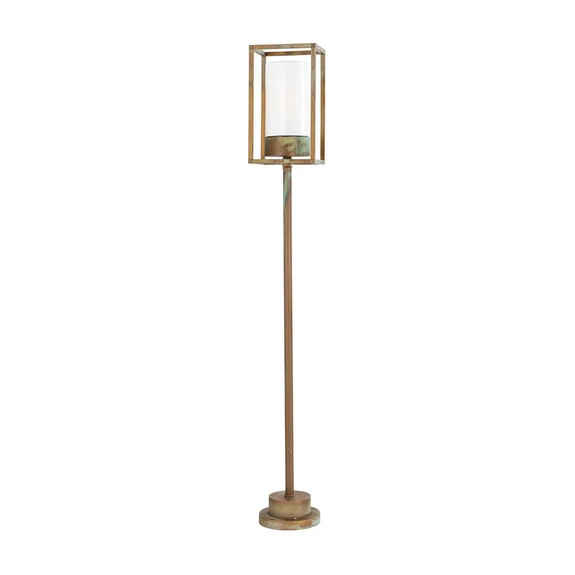 Vysoké světlo na cestu Cubic³ 3371 - povrchová úprava starožitná mosaz Světlo na cestu Cubic³ 3371 kombinuje geometrické tvary s mosazí, která byla ručně upravena starožitnou povrchovou úpravou, a vytváří tak velmi atraktivní kombinaci, kterou lze použít na mnoha pozemcích. Válcové svítidlo z mosazi a skla je orámováno ochranným mosazným obdélníkem. Svítidlo Cubic³ má konstrukci odolnou vůči mořské vodě, což znamená, že škodlivé účinky slaného vzduchu a slané vody nemají vliv na jeho životnost, takže je ideální pro osvětlení cest ve venkovních oblastech v blízkosti pobřeží.