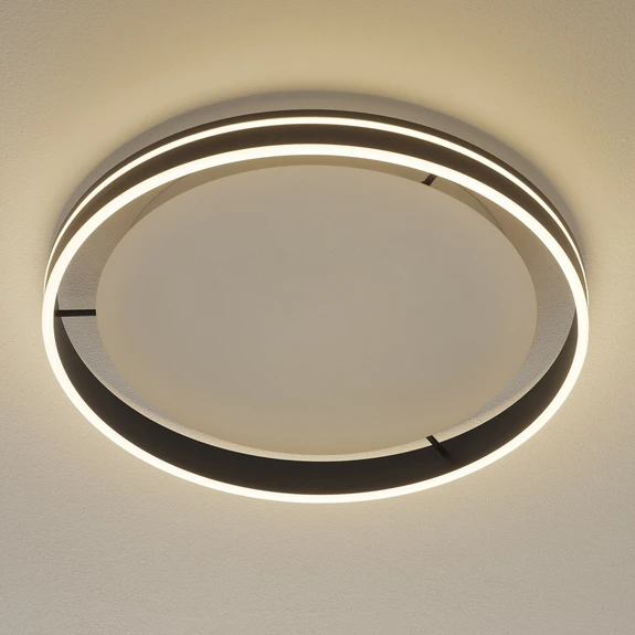 Kruhové stropní svítidlo LED Q-Vito s osvětlenými kroužky Kruhový kovový rám se dvěma osvětlenými kroužky orientovanými do stran a dolů dodává stropnímu svítidlu LED moderní vzhled. Ten jde ruku v ruce s užitečnými technickými vlastnostmi: LED diody lze nejen stmívat, ale také nastavovat jejich barevnou teplotu od 2 700 do 5 000 K. To lze provádět přímo pomocí přiložené řídicí jednotky. To lze provést přímo pomocí dodávaného dálkového ovladače - s nímž lze propojit až 20 světel Q současně - nebo hlasovým příkazem přes Amazon Echo Plus nebo Echo Show (2. generace). Stropní svítidlo s podporou ZigBee lze také integrovat do kompatibilního systému chytré domácnosti prostřednictvím příslušného můstku a následně ovládat pomocí příslušné aplikace. Technické údaje/kompatibilita: - Stmívatelné - Teplota světla nastavitelná od teplé bílé po univerzální bílou - Funkce paměti - Spínání až 20 jednotlivých Q-svítidel nebo Q-svítidel do max. 3 skupin pomocí jediného Q-dálkového ovladače. 3 skupiny pouze jedním dálkovým ovladačem Q - Kompatibilní s technologií ZigBee - Lze ovládat dálkovým ovladačem - Možnost přímého hlasového ovládání přes Echo Plus a Echo Show (2. generace) - Lze také pohodlně ovládat pomocí aplikace při integraci do systému inteligentní domácnosti na bázi ZigBee Poznámka: Pro připojení k systému inteligentní domácnosti nebo ovládání pomocí aplikace je nutný můstek; ten není součástí dodávky