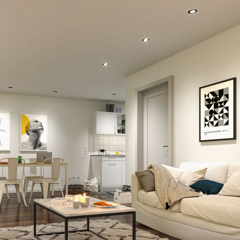 Jednoduchý design v balení po 10 kusech: individuálně otočná podhledová LED bodovky v nadčasové bílé barvě přinášejí teplou bílou světlo přesně tam, kde je potřeba. Díky integrované funkci 3-Step-Dim je lze stmívat ve třech stupních opakovaným stisknutím běžného vypínače. S otočnými svítidly pro optimální osvětlení.