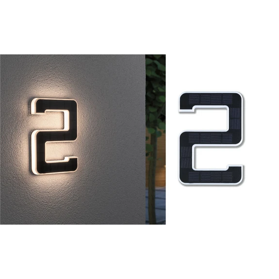 Číslo solárního domu je vybaveno solárním modulem, který je neviditelně zakomponován do čísla, které během dne nabíjí integrovanou vyměnitelnou baterii, takže lze osvětlené číslo domu zcela připevnit na fasádu, zeď nemovitosti nebo na jakékoli jiné místo. nezávisle na připojení napájení. Jakmile se setmí, je číslo domu nepřímo osvětleno integrovanými teplými bílými LED diodami. Světlo svítí bočně přes nasycenou hranici čísla.