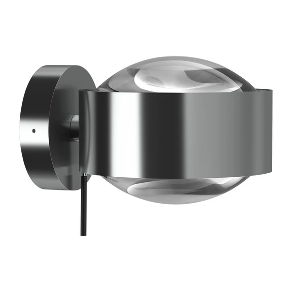 Moderní nástěnné svítidlo Puk Maxx Wall + se dvěma čirými čočkami, otočné Tato atraktivní klasika z řady svítidel Puk obohatí díky svému modernímu pojetí řadu obytných prostor. Puk Maxx Wall + je nástěnné svítidlo s paticí G9, které zaujme jednoduchým kovovým designem a má světelný paprsek směřující nahoru a dolů. Dvě vložené skleněné čočky dodávají výslednému světelnému kuželu ostrý a jasný okraj, který promítá na stěnu. Hlavu lze otáčet pomocí malého nastavovacího kolíku na krytu, což umožňuje přizpůsobit směr světla. Pod skleněné čočky lze volitelně umístit různé barevné filtry, které barevně zvýrazní atmosféru.