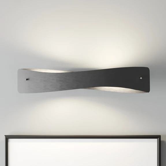 Zakřivené nástěnné LED svítidlo Lian v černé barvě, externě stmívatelné, vyrobeno v Německu Lian je vysoce kvalitní, vizuálně atraktivní výrobek, který lze začlenit do mnoha moderních interiérů a poskytuje příjemné, útulné světlo pro krásné akcentové osvětlení. Podlouhlé stínidlo se skládá ze dvou zakřivených kovových panelů s matně černou povrchovou úpravou, zatímco nástěnný držák je v barvě matného hliníku, který stylově a kontrastně doplňuje celkový design. LED diody svítí teplou bílou barvou a jsou účinné a jasné. Pokud chcete snížit svítivost, máte možnost použít externí stmívač (ovládání fáze přední nebo zadní hrany). Povrch byl pečlivě ručně opracován a světelné efekty, které nástěnné svítidlo Lian LED vyzařuje, jsou skutečně mimořádné na pohled. Díky velmi vysokému indexu podání barev (CRI>90) jsou všechny barvy v okolí do značné míry reprodukovány bez zkreslení, což je obzvláště příjemné pro oko a zajišťuje, že například venku na denním světle po výběru oblečení nezažijete žádné nepříjemné překvapení, protože barvy se najednou zdají být úplně jiné než doma. Díky výrobě v Německu je estetické nástěnné svítidlo zárukou velmi vysoké kvality a nejlepšího zpracování - s obzvláště velkým připojovacím prostorem v nástěnné krabici pro pohodlnou instalaci svítidla - vyzařování světla směrem nahoru a dolů