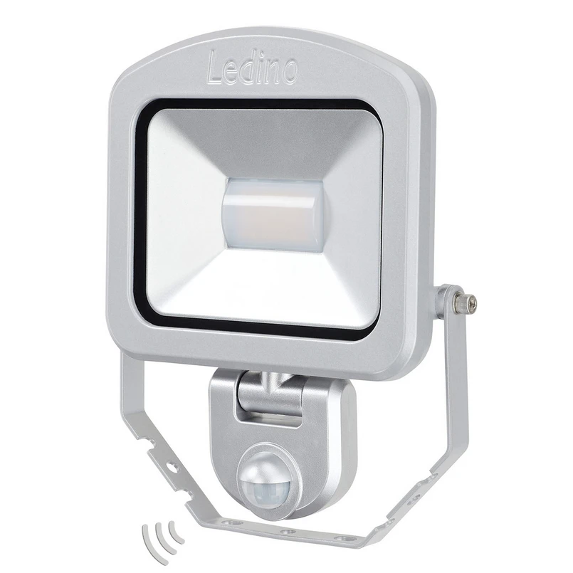 Stříbrný LED venkovní reflektor Charlottenburg vyrobený z tlakově litého hliníku s IR senzorem