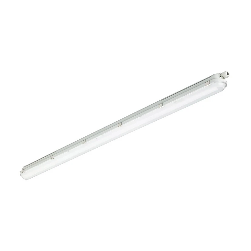 WTC120C je funkční difuzní svítidlo z řady Philips CoreLine Waterproof G2 LSC, které je energeticky úspornou alternativou k běžným svítidlům se zářivkami. Díky své polykarbonátové konstrukci odolné proti stříkající vodě a nárazům ji lze použít v široké škále prostředí, jako jsou umývárny, sklepy, sklady, parkoviště a dílny. Součástí dodávky jsou držáky pro povrchovou montáž a háčky pro závěsnou montáž.