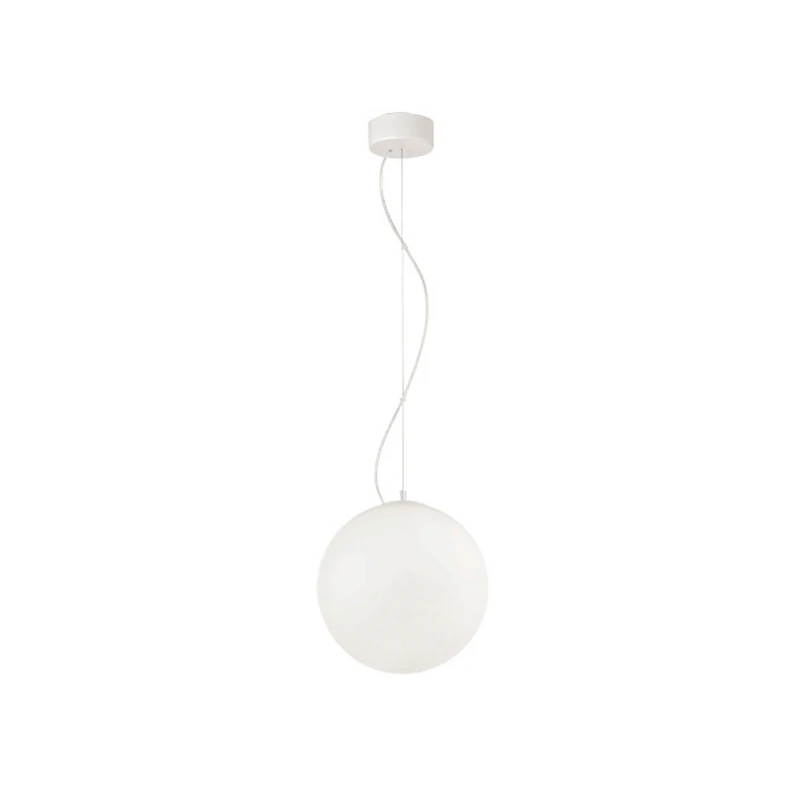 Skleněná závěsná lampa Mapa Sférické světelné těleso závěsné lampy Mapa je vyrobeno z foukaného bílého leptaného skla a vyzařuje do místnosti neoslňující světlo ze všech stran. Mapa je ideální pro zajištění dostatečného celkového osvětlení v obývacích pokojích a chodbách, ale také vytváří jasné, příjemné osvětlení a útulnou atmosféru, když je zavěšena nad stolem. Mapa je opatřena ocelovým lankem, které lze výškově nastavit až při instalaci.