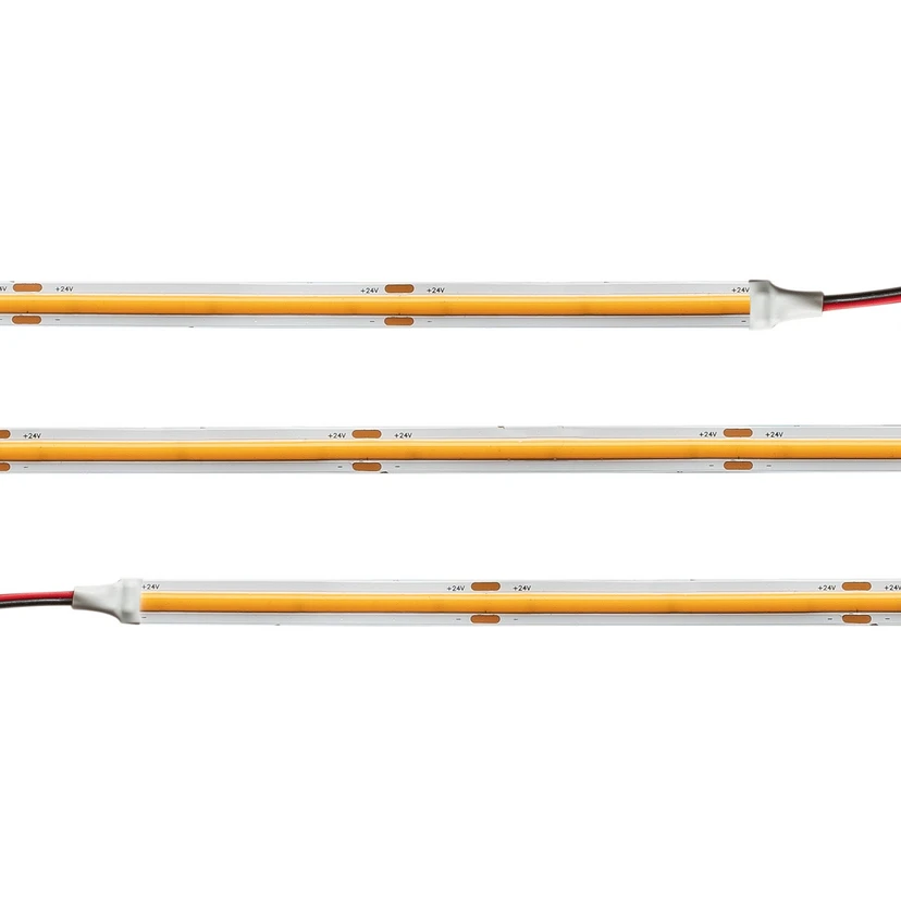 5 m dlouhý LED pásek s COB LED diodami pro rovnoměrné světlo s dobrým podáním barev, vhodný pro vlhké prostory Tam, kde je vyžadována stálá světelná linie, je tento LED pásek s kontinuálními a plynule kombinovanými COB LED diodami flexibilním a výkonným řešením. Lze jej použít také v koupelnách a lázeňských prostorách. Lze jej nastříhat na délku a opatřit lepicí páskou 3M pro snadnou instalaci - dobré barevné podání: CRI 90 - stupeň krytí: IP54 - vyžaduje napěťově řízené řídicí zařízení LED 24 V DC (není součástí dodávky) - s připojovacím kabelem 2 m na každém konci - lze jej rozdělit na délky 3,125 cm - pro dostatečné chlazení se doporučuje instalace do profilu
