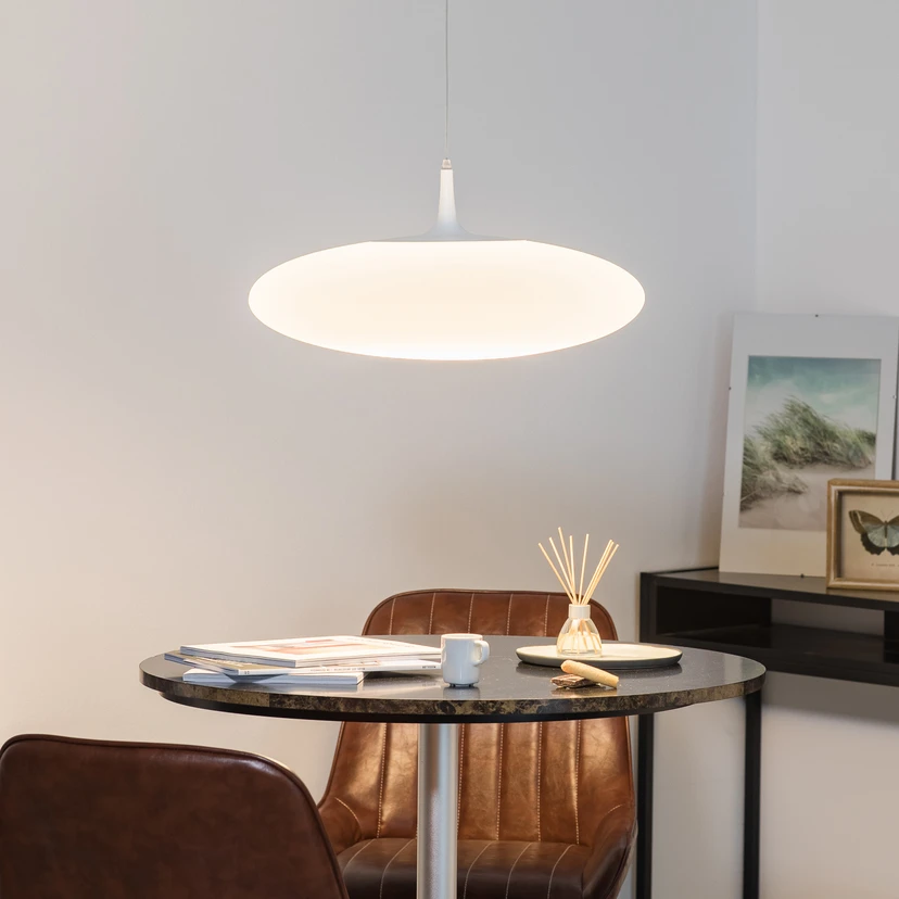 Kulaté závěsné svítidlo LED Squash z bílého polyethylenu Závěsné svítidlo LED Squash, krásně tvarované v moderním designovém jazyce, je moderní a příjemně jednoduchý světelný zdroj s mnoha vlastnostmi. Na jedné straně je polyethylen jako materiál velmi odolný, na druhé straně použitá technologie LED odpovídá vysoké energetické účinnosti. Při příkonu pouhých 19 wattů vzniká světelný tok 1949 lumenů - to je více než 100 lumenů na watt! Squash nejenže vypadá skvěle nad jídelním stolem, ale dokonale se uplatní i ve všech ostatních místnostech a poskytuje příjemné teplé bílé světlo.