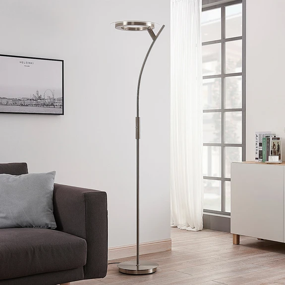 Stojací lampa Lindby LED Darion, šedá, kov, stmívatelná, 180 cm