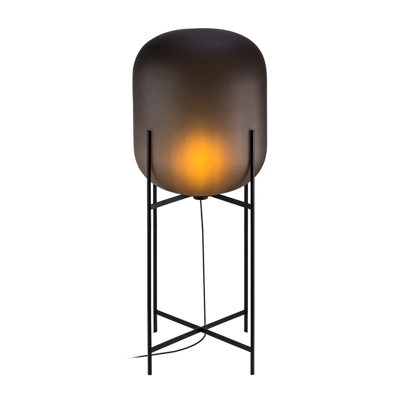 Designová stojací lampa Oda z foukaného skla Štíhlá základna objímá baňatý tvar. Industriální motiv zjemněný jemnými křivkami ručně foukaného skla. Stojací lampy ze série Oda odkazují na kýčovité tvary sil, pecí a vodárenských věží minulé éry. Stojací lampa Oda je mistrovským dílem tradičního řemesla. Každá lampa je vyrobena ručně a má charakteristické rysy, jako jsou nepravidelnosti v tloušťce skla, barevné odchylky, malé bublinky nebo nerovnosti ve skle či podstavci.