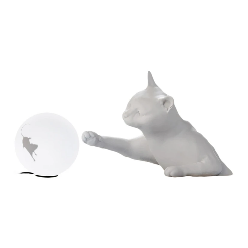 Stolní lampa Karman Maoo, bílá keramika, sklo, figurka kočky