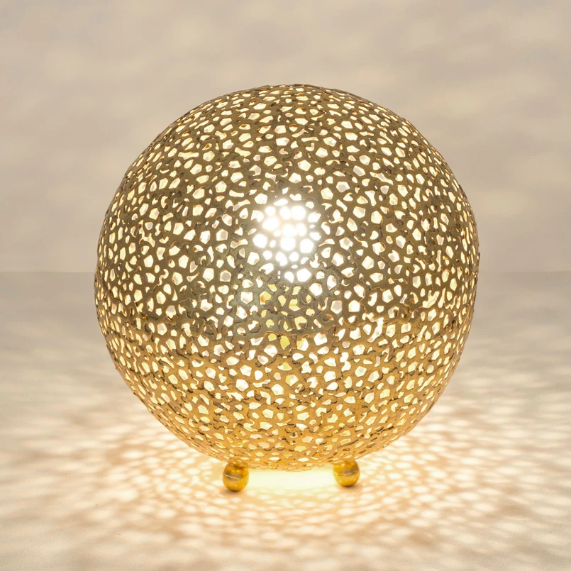 Sférická koule stolní lampy Lily se skládá z nepravidelného železného pletiva s nesčetnými prostory. Díky tomu světlo dopadá ven a vytváří dekorativní vzory na osvětleném interiéru. Ať už na parapetu nebo na stole v obývacím pokoji nebo jako poutač na komodě v hale, stolní lampa Lily zaujme svou úžasnou světelnou atmosférou na každém místě.