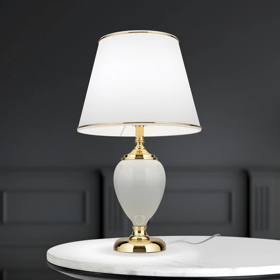 Stolní lampa Ovum, bílá/zlatá barva, výška 48 cm, keramika/chintz Doba doručení: 2 - 5 pracovních dnů