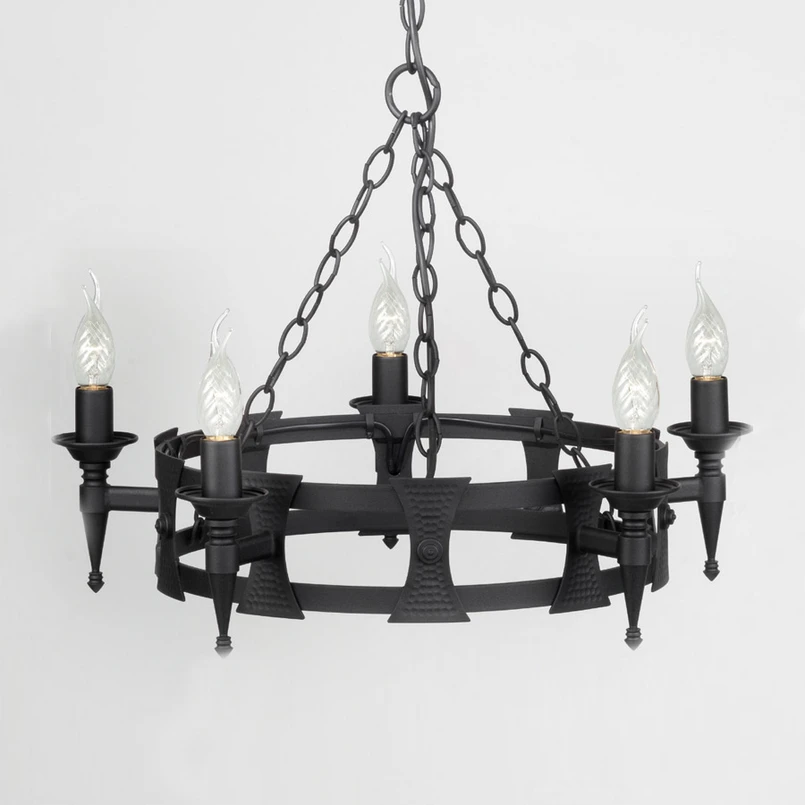 Zpracování kovů jako ve středověku: kované závěsné svítidlo Saxon pro stylové středověké prostředí