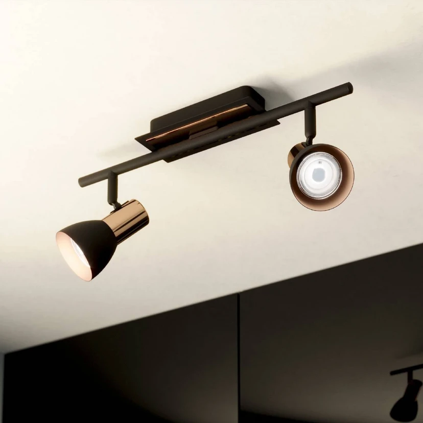 Stropní bodové svítidlo Barnham LED, délka 39,5 cm, černá/měděná
