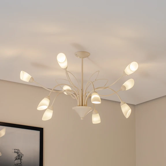Stropní světlo Gloriosa v sobě spojuje eleganci i praktickou funkčnost. Tento osvětlovací prvek je vyroben z vysoce kvalitního skla a dokonale zapadá do Raumgestalt. Svítidlo Gloriosa je víc než jen světelný zdroj; je to výjimečný výrazový prvek, který výrazně ovlivňuje atmosféru místnosti.