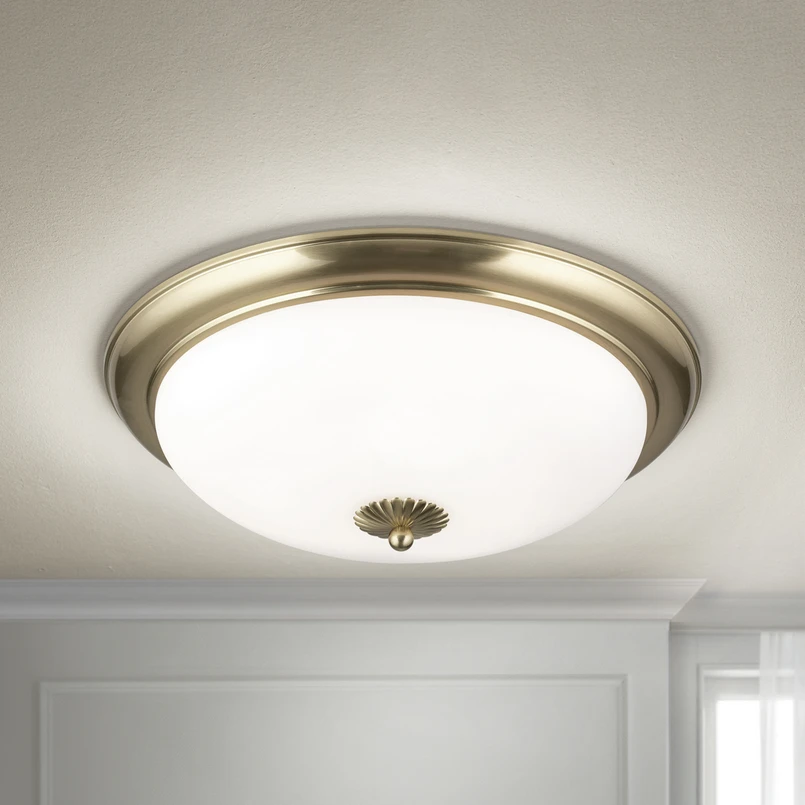Stropní svítidlo Empire, Ø 48 cm, mosaz, matné opálové sklo